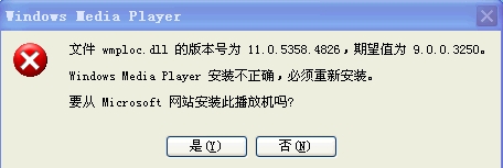 上回的问题多谢本论坛高手帮我解决.这次又遇到了新问题,我从别处下了Windows Media Player 11.0.5358.4826 简体中文特别版 ,可安装时界面提示系统盗版,无法安装,但我原来的Windows Media Player 10也不能使用了,提示wmploc.dll版本为11,得从新安装,可安装Windows Media Player 10提示先卸载.所以请高手帮忙,多谢了.