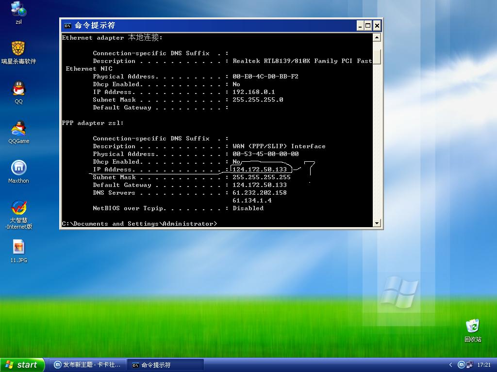 我用的是ADSL拨号上网,今天发现自己的IP地址变成奇怪的124.172.0.0什么的,不是ISP分配的222.41.0.0。请问这是怎么回事>?如何能改成原来的IP222.41. 请高手帮忙!