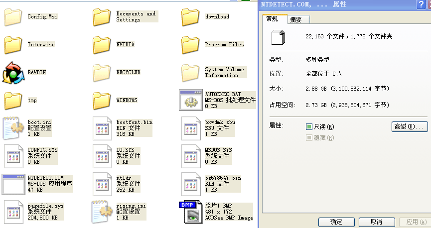 今天系统盘无辜增加了2个G,把隐藏文件和系统文件都显示出来。察看系统盘 还是找不出这2个G的出处在哪里。(把系统盘所有文件和文件加 加起来才3G,可总共使用却达到5.17G)谁能帮帮我
