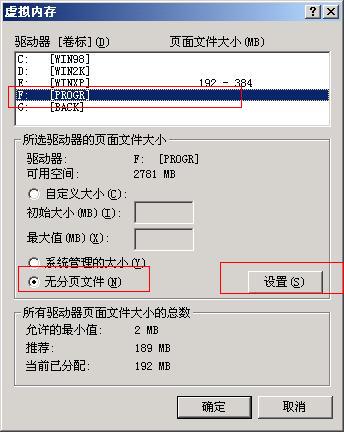 选中你要删除“pagefile.sys”文件的“分区”——设置为“无分页文件”——点后面的“设置”——再点确定!