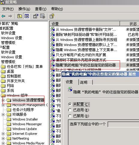鼠标指到→“我的电脑”击右键→“管理”→“磁盘管理”→在右面找到要隐藏的磁盘再击右键,选择→按如下图所示操作即可,要还原按它的反向操作即可