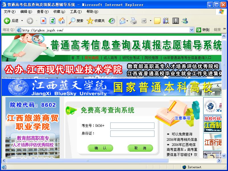 没有病毒,这是一个高考查分网,我二天都没打开,不知是我IE问题还是网站问题。谢了!!!http://ptgkcx.jxgzb.com/