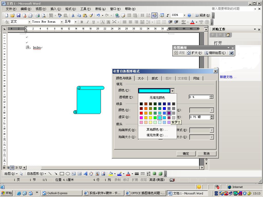 我的电脑office word 文档中插入图案以后要填色填不了,请高手指点.(重装了office的2000/2003也没用).