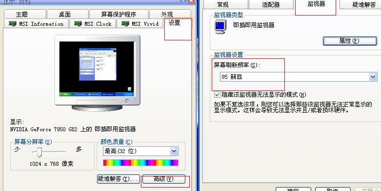 浏览网页时显示器的显示频率很慢,怎么能调快????谢了!!!