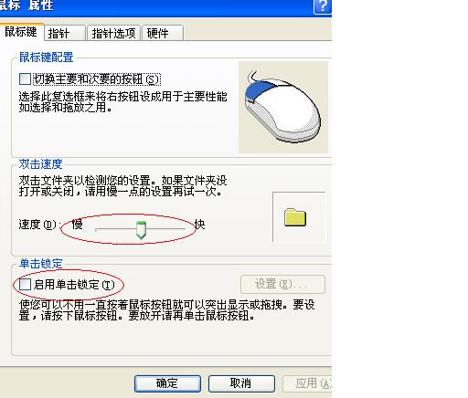 可能鼠标设置问题→在“控制面板”→鼠标属性→参见下图红框调试一下看看能对你有无帮助解决。