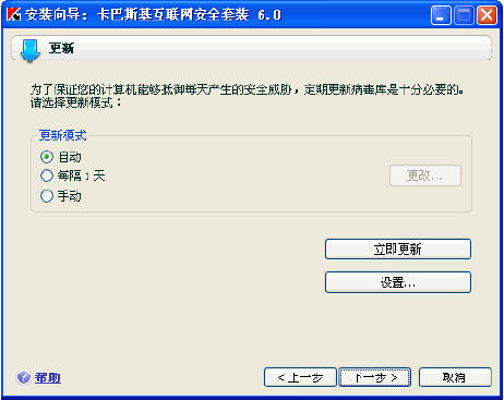 自动-程序会按照默认设置自动更新反病毒数据库。