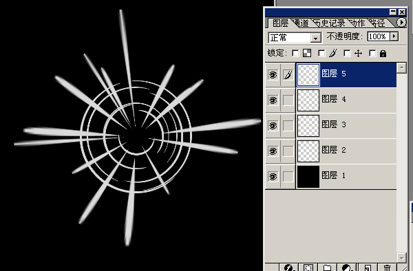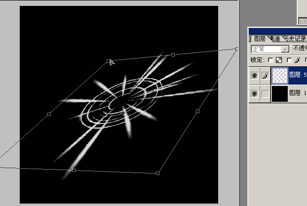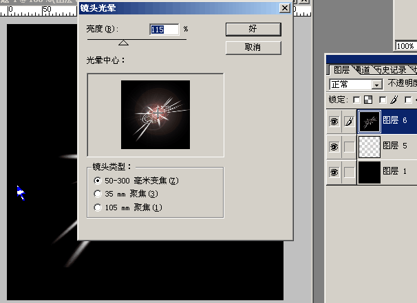 对图层 6 做镜头光晕(滤镜/渲染/镜头光晕)将中心放到图形的中心