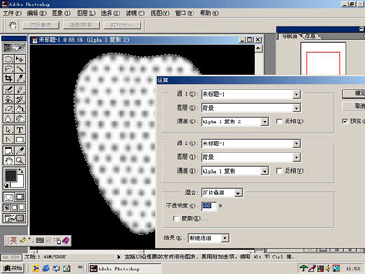 九、新建图层,用白色填充选区,将Alpha 1复制3与其进行应用图象处理,后将图层设为正片叠底方式。