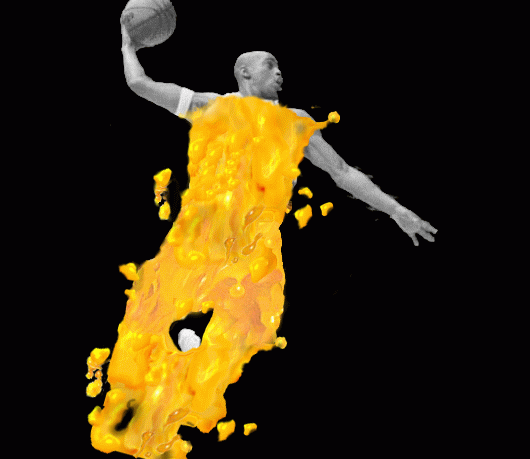 继续添加两条手,为了不使整个画面太过呆板可以加一些飞溅的果汁上去:
