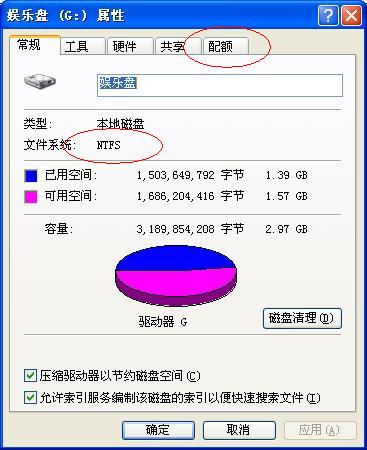 他给我,我用作次盘的那个是NTFS格式.而且里面已格式化了,没有文件.但却显示已用了66.9M.还有那盘的分驱属性中还多了一项"配额'选项....