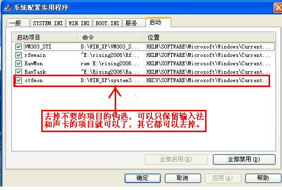 在“开始菜单”→“运行”→输入“msconfig”回车→进入“系统配置实用程序”→击“启动”卡如下图所示,如果还没解决问题?还可按如下方法试试在“开始”→“运行”→输入“REGEDIT”回车,按F3键,在搜索项里输入那个“c:盘的文件夹”找到它相对应的程序名及它的项目再将它删除,至到完全搜索完毕。