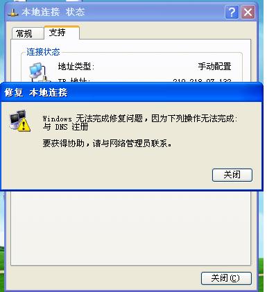 【求助】修复连接时无法与DNS注册