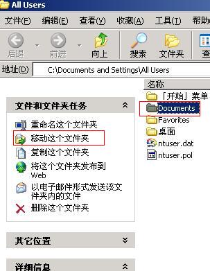 默认为,C:\Documents and Settings\All Users\Documents,我欲将其更改问D:\All Users以便C盘的GHOST备份和恢复,我尝试通过修改注册表和利用Microsoft TweakUI都不能完成(自动恢复原样),应该怎么办?