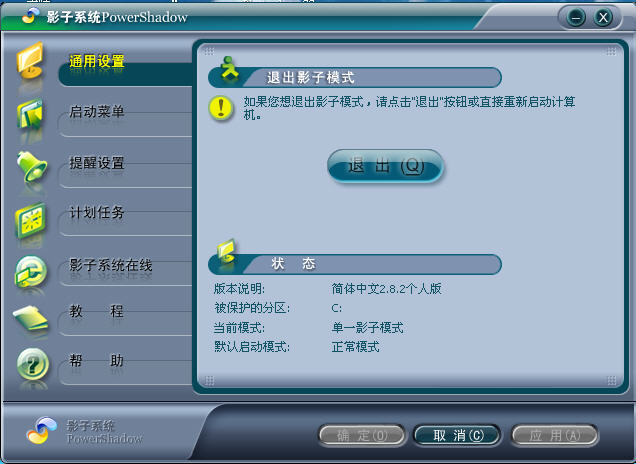· 当新病毒爆发而暂时没有有效的方法对付的时候,可暂时进入Shadow模式放心工作。当 试用某些新软件时,可以进入Shadow模式安装,如不想继续使用,退出Shadow模式后程 序恢复到安装软件之前状态,免去了卸载软件的麻烦。