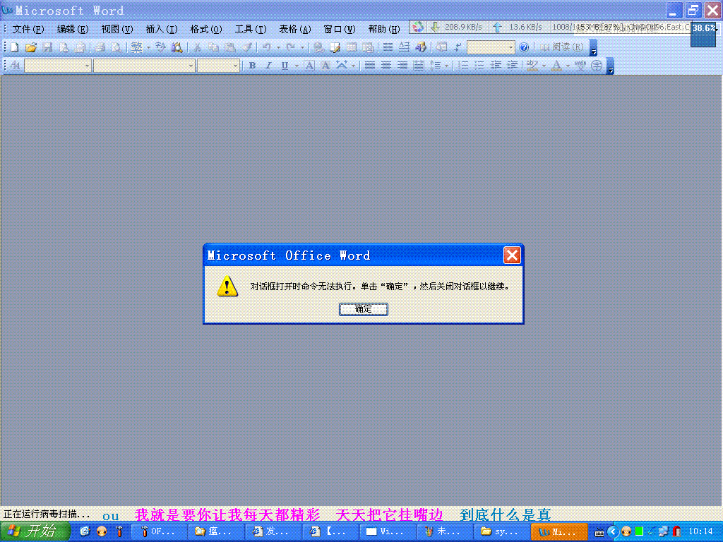 真是屋漏偏逢连夜雨,我的记事本还没有修好,word又坏了,请过路高手帮我一下。如图,打开的时候老是要弹出这个对话框来。怎么办啊?