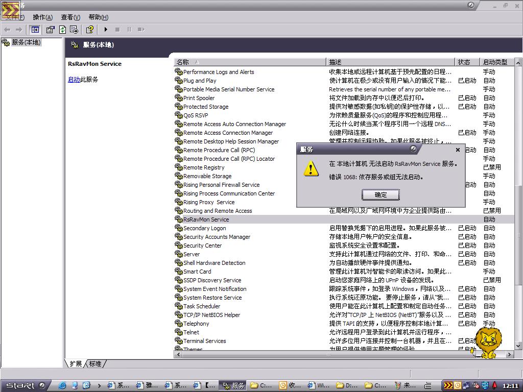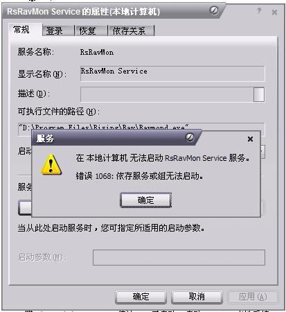 双击--"RsRavMon Service"服务--登陆--硬件配制文件--看到相应的启用--应用--常规--启动--"RsRavMon Service"服务