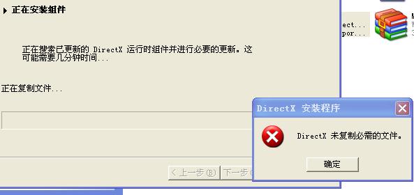 DirectX 9。0C 的安装程序,到了最后一步,就说没有复制必要的文件