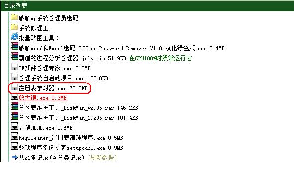 你可以到我的“网络优盘”里下载一个“注册表学习器.exe”文件来参见下图红框中所示