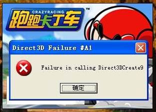 “Failure in calling Dierct3DCreate9”是什么意思?