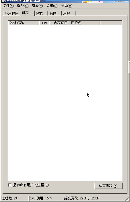 一片空白..原来有程序名和占用CPU还有内存显示 现在没有了.怎么回事