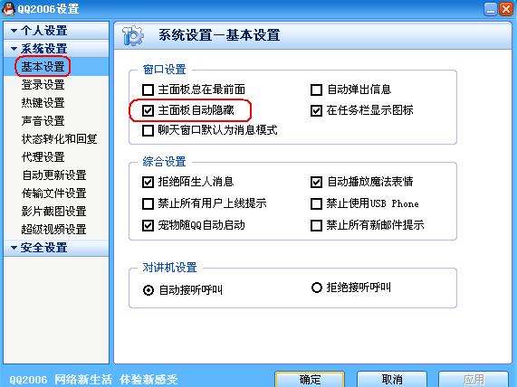 以前用2000 SP4系统时,把QQ面板拖到屏幕顶部,QQ面板会直接隐藏到屏幕顶部,现在装的XP SP2,把QQ面板拖到屏幕顶部时,它是慢慢滑动到屏幕顶部,请问有什么办法可以改“滑动隐藏”为“直接隐藏”?