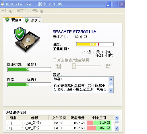 这软件可以检测硬盘的运行时间,温度,健康态和性能。运行时间检测可以知道你新买的硬盘是不是返修或二手的,买硬盘的时候拿上这东西可以买到好硬盘啦,参见下图片