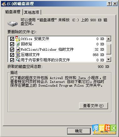XP系统,进行磁盘清理时发现有两项不能清理,但是也不知道他们的具体位置,请高手赐教:应该如何删除它们?
