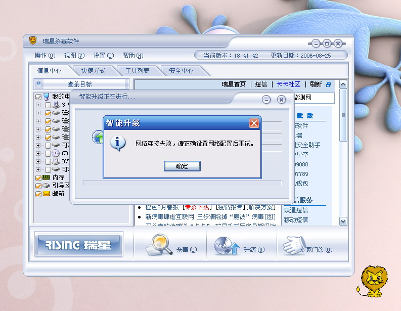 我用的是正版瑞星~不知道怎么搞的,最近一按升级就出现这样的提示,到底是什么回事啊?帮忙解释下谢谢~