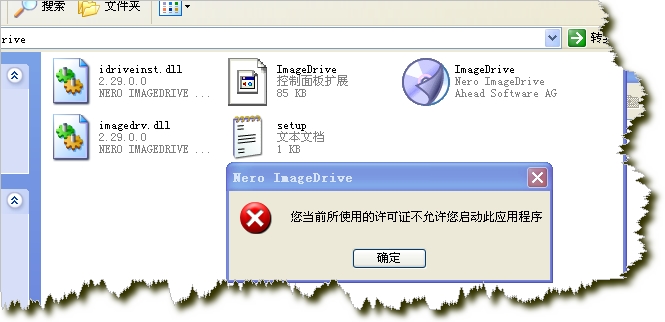 我的nero的程序组里没有Nero Imagedrive项 ?从安装文件夹里找到他后,双击出现如图提示 ,该如何和操作。