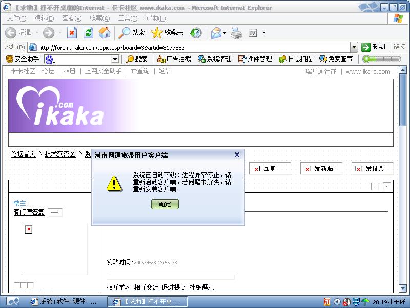 瑞星卡卡安全论坛技术交流区系统软件 【求助】上网时出现的问题 日志