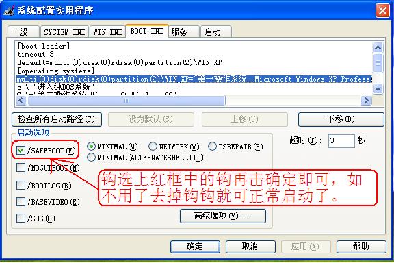 的确,在XP系统中,没有单独的让人进入安全模式的,
