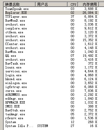 CPU使用率怎么一直在60%-100%之间.我才开了一个网页,一个千千静听,一个QQ,一个TS~~~发个日志上来~高手帮我看下~~