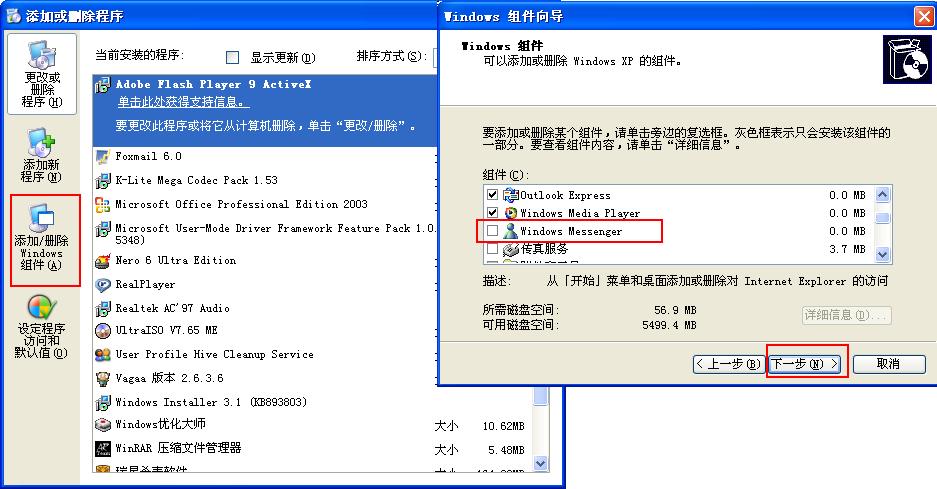 最后到控制面板--添加删除程序--添加删除WINDOWS组件里面找到windows Messenger去掉前面的勾,下一步,最后删除C:\program files\messenger目录。