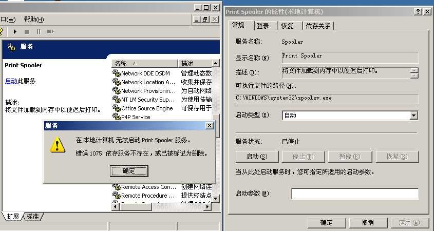 我的电脑右键--管理--服务和应用程序--服务 找到print Spooler启动服务并设置为自动。确定。