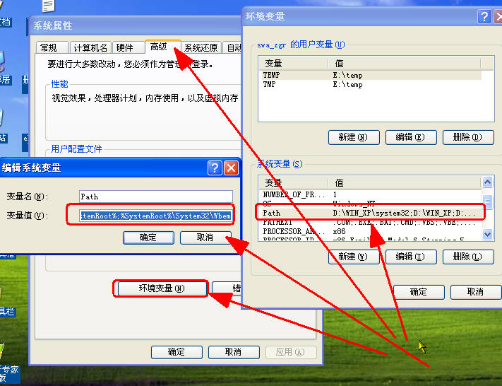 试试鼠标指到“我的电脑”击右键→“属性”→“高级”→环境变量→“设置”→参见下图红框所示→