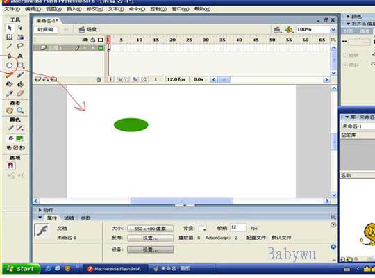 首先打开FLASH,选择椭圆工具