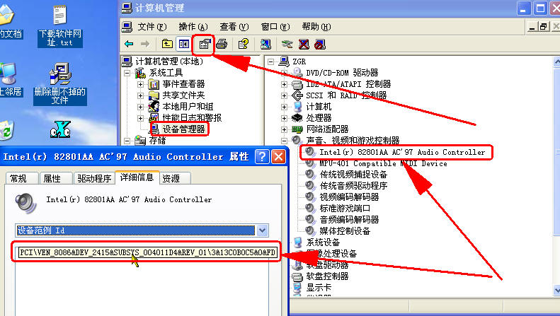 试试再鼠标指到“我的电脑”上右击选择“管理”→“设备管理”中打开声卡属性→在属性中点击“详细信息”这项如下图:用笔记下声卡的ID号,这样再在你下载的驱动程序中找它的一个扩展名为“inf”“smwdmv13.inf”的文件一个安装文件打开它,找到[AnalogDevices]这项下以相同的格式添加自己记下的声卡ID号,参见下图的红色框中所示ID号,→参见下图红色框中所示操作即可。