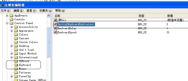 HKEY_USERS---Default---Control Panel---Keyboard---将数值名称---InitialKeyboardIndicators---资料值更改为 2