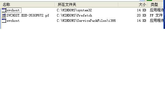上网查了svchost的资料,看见有人说如果svchost只存在于c:\windows\system里就正常,我搜索了本机后发现我的svchost还有两个其他的地址。请高手帮忙看看是怎么回事。