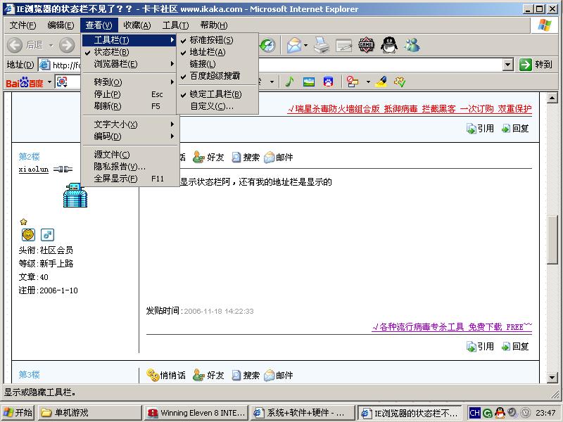 IE浏览器的状态栏不见了??