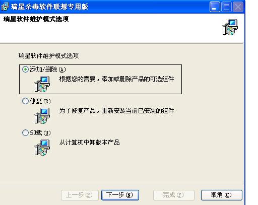 教你一招~~~点开始---点瑞星杀毒软件主程序--点添加或者删除