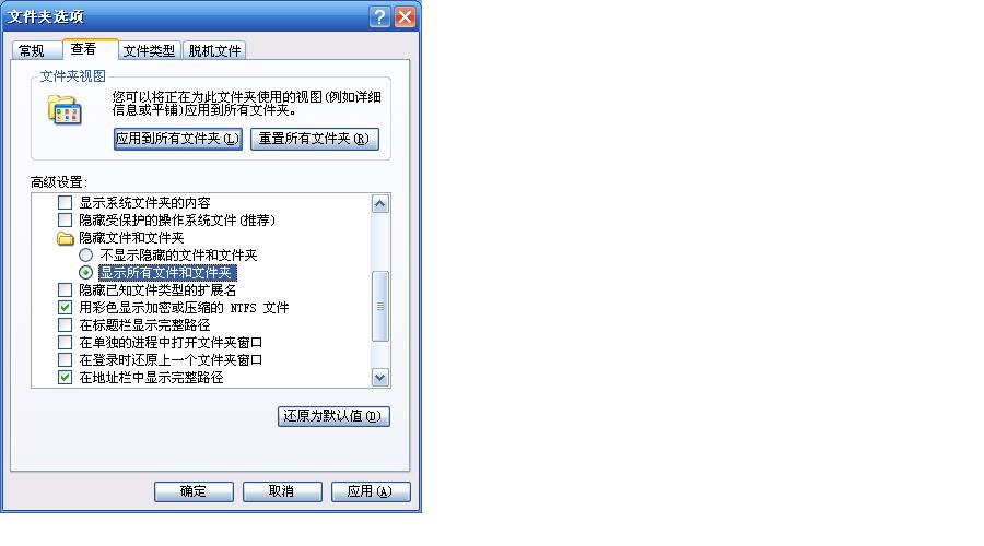 | 引用: | 【19810105的贴子】我的电脑近来发现无法显示“隐藏文件”了 按道理应该只要在文件夹选项-查看选项卡:选中显示所有文件和文件夹 就可已看到隐藏文件了 但我还是看不到,怎么回事啊 用瑞星杀毒并没有发现病毒啊 大家帮我把把脉吧 ……………… |