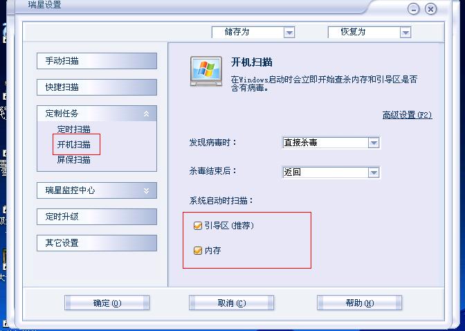 自从前几天升级了瑞星2007~~~~~~~发现开机本来的那个系统盘检测没有了~~~~怎么搞也搞不回来~~~~~怎么办~~~~~~~如果有什么错误而没有检测~~~~~~~那么结果会挺严重的~~~~~~~麻烦各位大侠帮帮忙~~~~~~~~