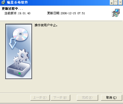 我在用瑞星升级过程中,当进行到更新过程中的时候出现操作被用户中止的提示,我没有进行中止的操作,请问这是为什么?[img][/img]