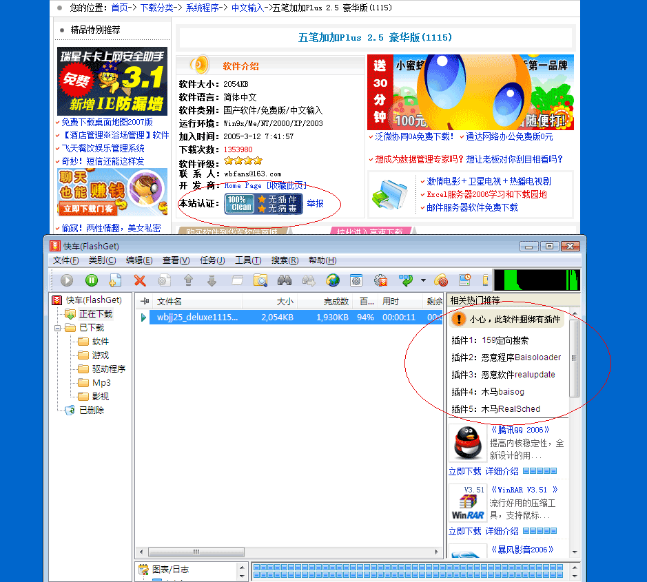 新版的快车,增加了反插件的功能~~能在下载软件前就知道有什么插件,可以避免不必要的安装~~快车真是想的周到啊~~