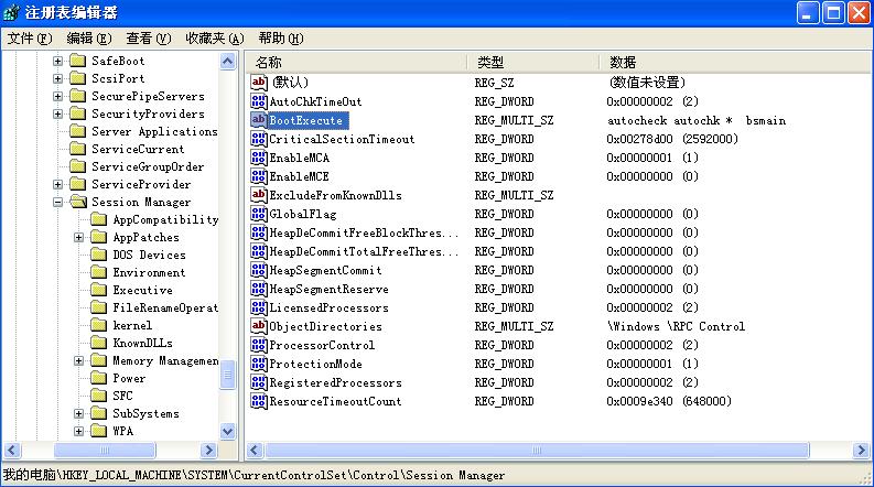 第一,禁止一切程序,包括WINXP管理员,无权修改注册表Session Manager这个键值,包括里面所有的DWORD值,第二,强行在BootExecute这个DWORD字段里加上这句话,用来设置XP系统启动服务Network Connection这个服务,大家都知道,这个服务是用来连接网络的, 要是不启动这个服务,将无法实现上网,瑞星的钩子程序却和XP有冲突,导致Network Connections这个服务无法启动,其他服务就更别说了,为了弥补,瑞星就在BootExecute这个键值上加上如下字段。autocheck autochk *bsmain。告诉XP。这就是为什么网友反映,进XP之后屏幕会蓝一下,下面一片空白的原因。