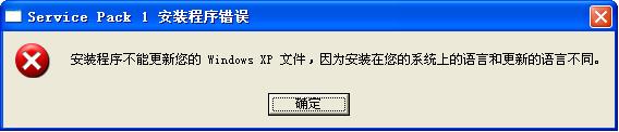 “SP1安装程序不能更新你的Windows XP文件,因为安装在你系统上的语言和更新的语言不同。”