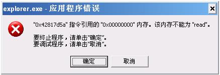 解决方法如下,请按步骤执行: 先打开我的电脑→工具→文件夹选项→查看→选中显示所有文件和文件夹,去掉“隐藏受保护的系统文件”的选中,让所有的文件都显示出来 然后右击硬盘→打开的方法打开硬盘,你会看到auotrun.inf文件,先不要删除它,双击它,会自动用记事本打开这个文件,里面有open="一个有exe文件",到这里你要记信这个open后的这个exe文件,然后关闭记事本。 接下来,右击任务栏→任务管理器→进程→找到你刚才看到的open后的那个exe文件的进程→右击→结束进程树。再到该硬盘下面,你应该可以顺序删除里面的autorun.inf和open指向的exe文件了。 一般它还会感染其他盘,并且会在注册表里面有启动项,只要你重启就会重新发作,所以你还要把其它的盘检查一次。然后删掉注册表里的启动项,方法如下: 开始→运行→regedit,进入注册表,打下如下的子键: HKEY_LOCAL_MACHINE\SOFTWARE\Microsoft\Windows\CurrentVersion\Run 在右边找open=指定的那个exe文件的启动项。一般会是c:\windiws\*****.exe之类!! 如果有,右击→删除即可!!这样就不会再发作了! 原因二:rose病毒: 症状:双击盘符无法打开,只能通过右键打开;几天之后删除系统NTDETECT.COM文件,系统无法启动。 传播途径:U盘、MP3、移动硬盘 检查方法:将文件夹选项--查看中的"隐藏受保护的操作系统文件(推荐)"前的勾去掉,并在此项下面选择“显示所有文件和文件夹”。然后打开任一盘符,如果发现有“rose.exe”和“AUTORUN.INF”文件,则已中毒。 解决方法: 手动: 结束rose.exe进程,然后删掉以下文件:各个盘符下的autorun.inf和rose.exe文件(包括自己的U盘等),c:\windows\system32\run.reg,c:\windows\system32\systemdate.ini(里面记录着删掉NTDETECT.COM文件的时间),d:\systemfile.com文件;最后将注册表中HKEY_LOCAL_MACHINE\SOFTWARE\Microsoft\Windows\CurrentVersion\Run下面的dll键值删掉,然后重启即可 1、打开文件夹选项-文件类型 找到“驱动器”点下方的“高级”,点选“编辑文件类型”里的“新建”,操作里填写“open”,用于执行操作的应用程序里填写explorer.exe,确定,随后返回到“编辑文件类型”窗口,选中open,设为默认值,确定. 或者找到HKEY_CLASSES_ROOT\Drive\shell将shell下的全部删除 然后关闭注册表 按键盘F5刷新或重启电脑。 2、 一。更新病毒库安全模式下杀毒。 二。到每个盘的根目录下找一下是否有autorun.ini文件,全部删掉。 3、是否执行AutoRun功能其实由注册表来决定。在“开始”菜单的“运行”中输入Regedit,打开注册表编辑器,展开到HKEY_CURRENT_USER SoftwareMicrosoftWindowsCurrentVersionPoliciesExploer主键下,右边窗口中的二进制值“NoDriveTypeAutoRun”决定了是否执行AutoRun功能(包括硬盘和Ramdisk)。“NoDriveTypeAutoRun”默认键值为95 00 00 00。 内存不能为read(written)的解决方法 运行某些程序的时候,有时会出现内存错误的提示,然后该程序就关闭。 “0x????????”指令引用的“0x????????”内存。该内存不能为“read”。 “0x????????”指令引用的“0x????????”内存,该内存不能为“written”。 出现这个现象有方面的,一是硬件,即内存方面有问题,二是软件,这就有多方面的问题了。 一、先说说硬件,一般来说,电脑硬件是很不容易坏的,内存出现问题的可能性并不大,主要方面是: 1、内存条坏了(二手内存情况居多); 2、使用了有质量问题的内存; 3、内存插在主板上的金手指部分灰尘太多; 4、使用不同品牌不同容量的内存,从而出现不兼容的情况; 5、超频带来的散热问题。 解决方法建议: 你可以使用MemTest 这个软件来检测一下内存,它可以彻底的检测出内存的稳定度。 二、如果都没有,那就从软件方面排除故障了。 先说原理: 内存有个存放数据的地方叫缓冲区,当程序把数据放在缓冲区,需要操作系统提供的“功能函数”来申请。如果内存分配成功,函数就会将所新开辟的内存区地址返回给应用程序,应用程序就可以通过这个地址使用这块内存,这就是“动态内存分配”,内存地址也就是编程中的“光标”。 内存不是永远都招之即来、用之不尽的,有时候内存分配也会失败。当分配失败时系统函数会返回一个0值,这时返回值“0”已不表示新启用的光标,而是系统向应用程序发出的一个通知,告知出现了错误。作为应用程序,在每一次申请内存后都应该检查返回值是否为0,如果是,则意味着出现了故障,应该采取一些措施挽救,这就增强了程序的“健壮性”。若应用程序没有检查这个错误,它就会按照“思维惯性”认为这个值是给它分配的可用光标,继续在之后的执行中使用这块内存。 真正的0地址内存区储存的是计算机系统中最重要的“中断描述符表”,绝对不允许应用程序使用。在没有保护机制的操作系统下(如DOS),写数据到这个地址会导致立即当机,而在健壮的操作系统中,如Windows等,这个操作会马上被系统的保护机制捕获,其结果就是由操作系统强行关闭出错的应用程序,以防止其错误扩大。这时候,就会出现上述的内存不能为“read”错误,并指出被引用的内存地址为“0x00000000“。内存分配失败故障的原因很多,内存不够、系统函数的版本不匹配等都可能有影响。因此,这种分配失败多见于操作系统使用很长时间后,安装了多种应用程序(包括无意中“安装”的病毒程序),更改了大量的系统参数和系统档案之后。 在使用动态分配的应用程序中,有时会有这样的情况出现:程序试图读写一块“应该可用”的内存,但