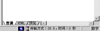 注意,此时工作区的左下角有三个切换显示模式的选项卡[图二]。单击“普通”选项卡,就切换到了普通模式。在普通模式可以编辑网页的内容以及设置各种格式。单击“预览”选项卡就到了预览模式。如果要看一看当前编辑的文件在浏览器中的显示情况,就使用预览模式,在预览模式下,是不能编辑网页的。单击“HTML”,有的时候,也可以切换到HTML模式直接对网页对应的HTML文本文件进行编辑,从而为网页作一些特殊的设置。