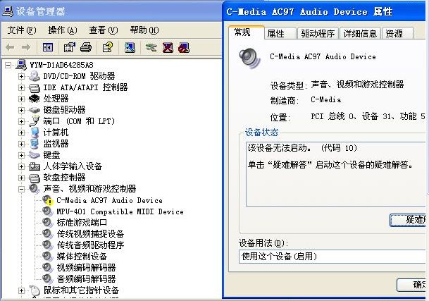 XP系统,C-media AC97 Audio Device 有一个黄色的感叹号,没声音